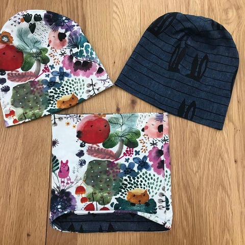 Ompelijan poppaduu tekemät pipo ja tuubihuivi