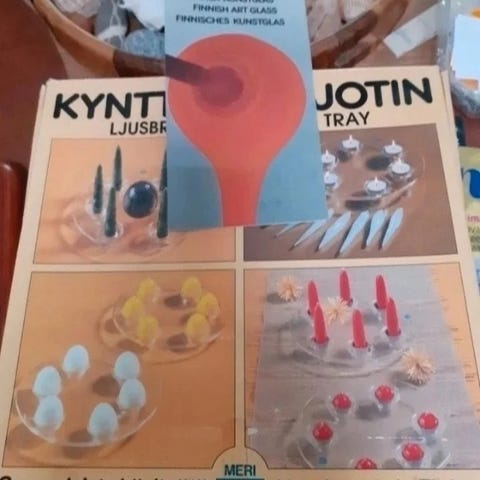 Merilasin valmistama kynttilätarjotin, 6 kynttilälle. Alkuperäisessä pakkauksessaan. Ostaja maksaa mahd. toimituskulut.