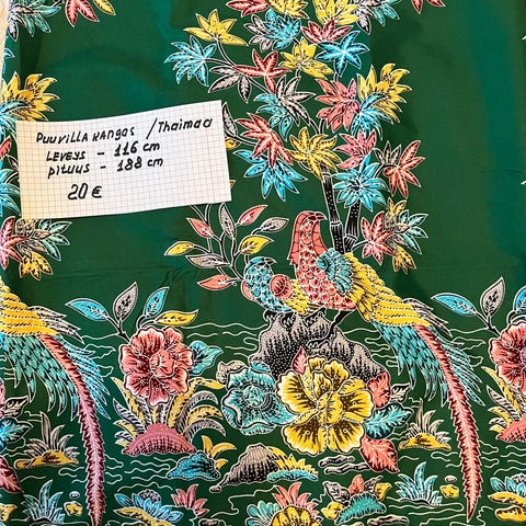 Määrät lukee kankaiden päällä olevissa tarroissa; Hinnat