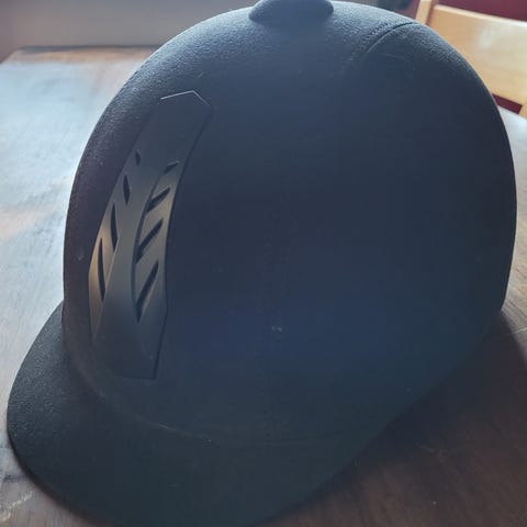 Horze kypärä, koko L (57-58) sekä yksisarviskypäränsuoja. Kypärää käytetty max. 10 kertaa. Suojauksessa muutama tahra, pesu jää ostajalle :)