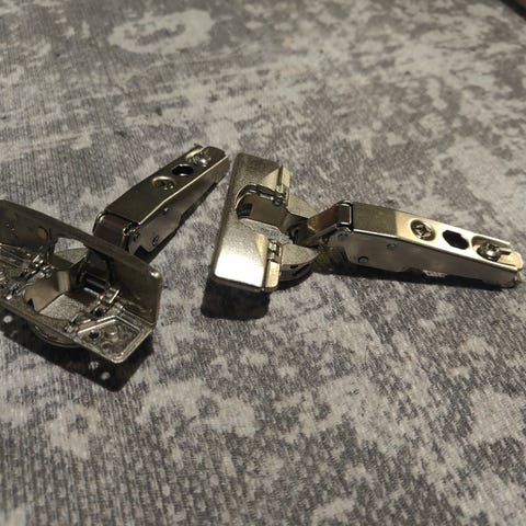 Ylimääräisenä 2kpl käyttämättömiä päätyasennus kalustesaranoita.