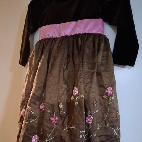 Ihana, pehmeä juhlamekko, jossa monta kerrosta alaosassa. Koko 110, mutta menee isommallekin. Pitkä helma. Nouto Porvoo tai postitus.
