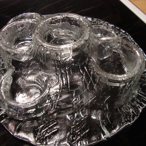 Merilasi Oy:n valmistama Tulivuori tuikkualusta kuudelle tuikkukynttilälle.