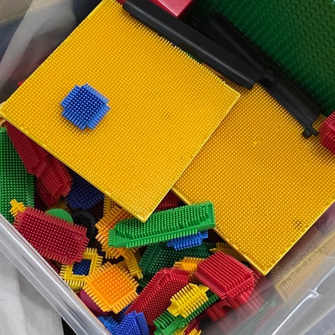 Myydään iso kassi rakennuspalikoita, erivärisiä.