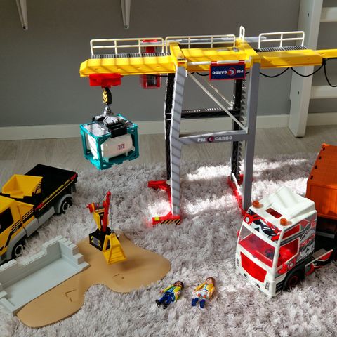 Playmobilin kuorma-auto kontilla (5255). Mukaan tulee myös kuski ja vaahtosammutin. Ohjaamon katon saa irrotettua, samoin kontin yläosan. Auton mitat: pituus 32 cm, leveys 12 cm ja korkeus 15 cm. Muuten kuin uusi, mutta lavasta puuttuu takaa toinen salpa.