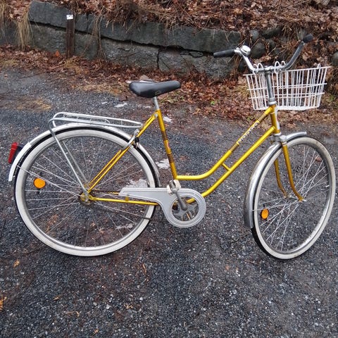 12 vaiht. (2x6) vintage maantie-retkipyörä Shimano Positron FH-vaihtajalla. Runkolukko.