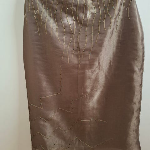Täysimittainen hame ja olkaimeton yläosa. Grafiitin hamaa kauniisti kiiltävä asu on Face merkkinen ja koko 36. Ryhdikäs luullinen toppi jossa piilovetoketju. Molemmissa osissa on myös vuori Kerran juhlassa käytetty kokonaisuus on uudenveroinen. Häihin , juhliin, vanhojen tansseihin..Hp 25e, nouto Tuusula Jokela