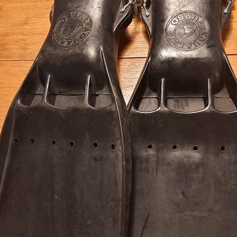 Käyttämättömät Aquarius Turbo sukellusräpylät.