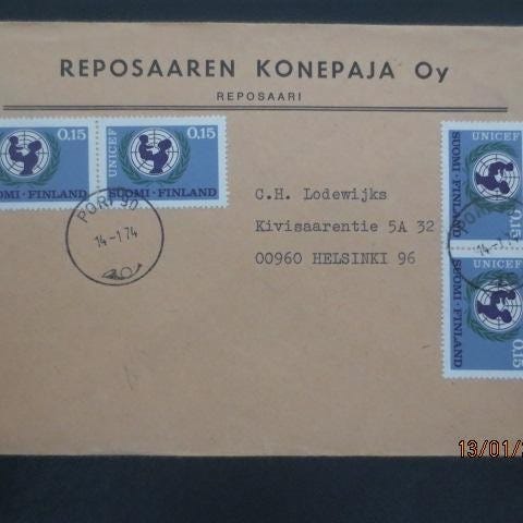 5 kulkenutta kuorta ja yksi kortti, Leimat 70--80--90-luvulta.