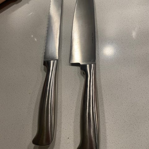 Kuvanmukaiset käytetyt veitset, kahvaosissa enimmäkseen käytönjälkiä.