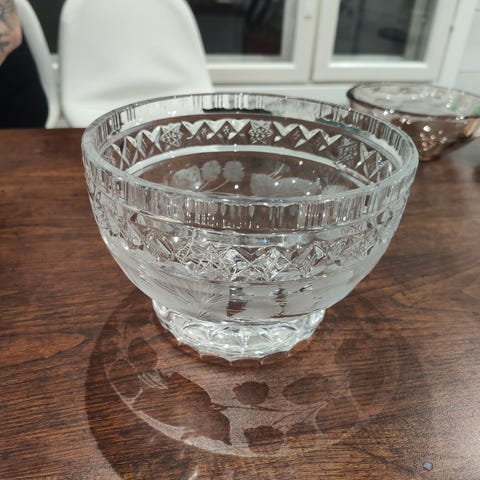 Riihimäen Lasi Aimo Okkolin Virpi kristallikermakko mansikkakuvioilla, malli 6141.