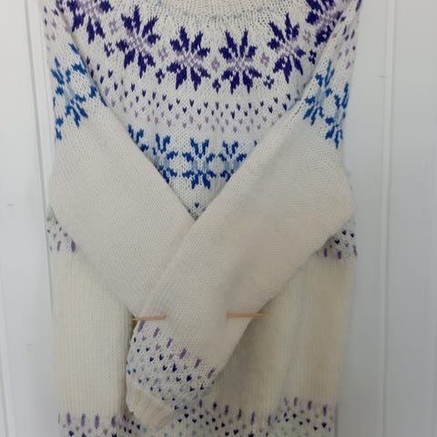 Myydään uudenveroinen, ihana, valkoinen nalle neulepusero. Koko 42-44. 70% akryyli ja 30% villa. Upea neule, jota tyylittää hieno brodeerattu nalle kuvio edessä. Helma, hihansuut ja pääntie ovat huoliteltu resorilla. Savuttomasta kodista. Postikulut 9euroa. Yhdistelen postikuluja. Myynnissä toisessa ilmoituksessa nalle neuletakki. En käytä ToriDiiliä.