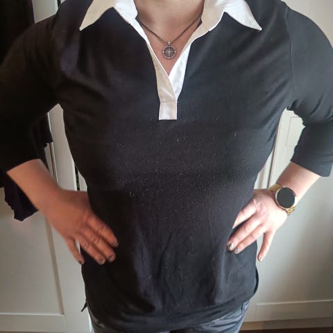 Silkkimäinen kauniisti laskeutuva polyesteripaita. Pituus 67.