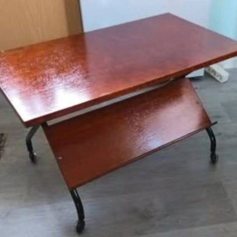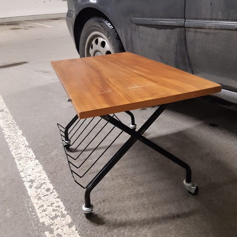 Myydään siisti, vanha retro tv-taso. Pyörät alla, taittuva malli ilmeisesti kuvan kiinnikkeiden perusteella. Sijainti Juankoski.