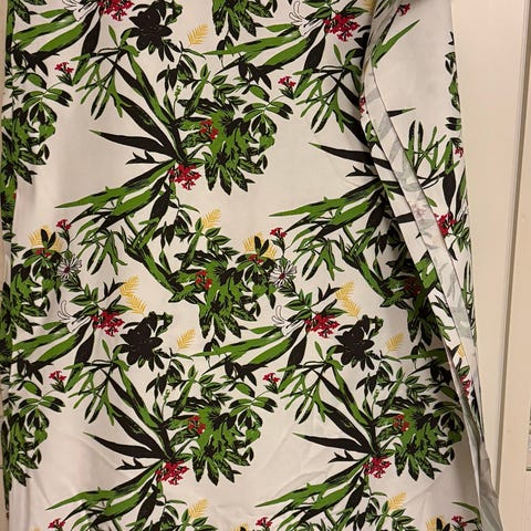 Oranssisävyiset polyesterikangaspalat. Osa ollut verhoina. Hyväkuntoisia. En ala mittaamaan. Taloudessa ei eläimiä eikä tupakointia.