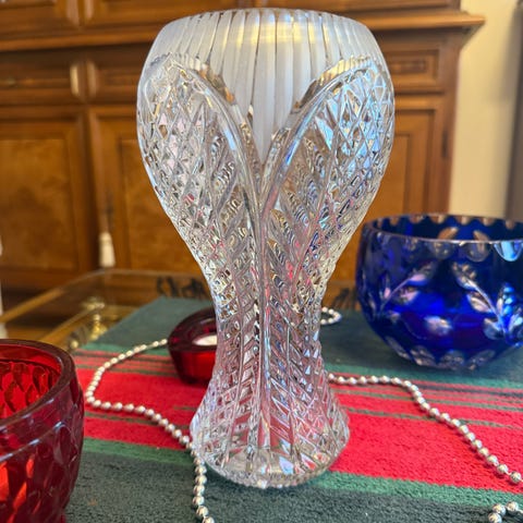 Hieno antikkin maljakko, kristalli, hopea, tiedot ovat kuvassa, erinomaisessa kunnossa