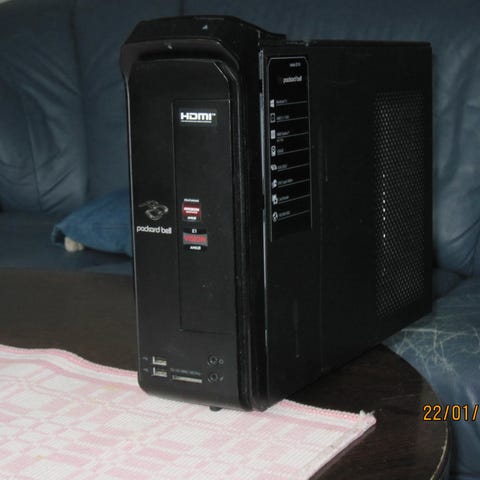 Myydään huollettu, testikäytössä ja verkossa käytetty pieni, hiljainen ja viileä musta Packard Bell imedia S1800 (imedia D4711 NCD) tietokone.