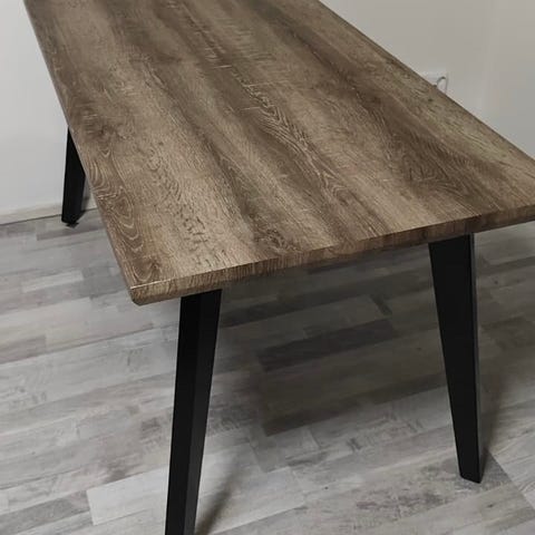 Tyylikäs design-ruokailupöytä laajennusmekanismilla. Mitat: 140x80cm, korkeus 76cm. Uutena hinta yli 1000€ luokkaa.