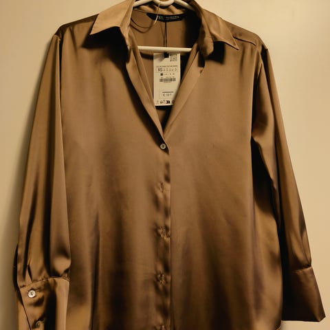 Zaran uusi kauluspaita, koko M. Joustava materiaali, mutta pienehköä kokoa. Vain sovitettu, mutta itselle pieni. Puhdas, mutta kaapissa tullut ryppyjä.