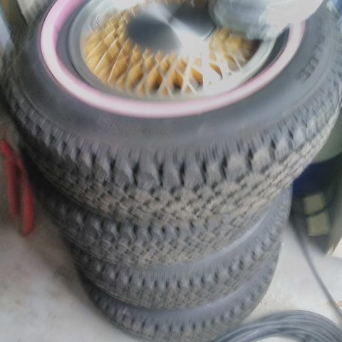 1997 Cadillac DeVille Concours etuveto 16 Alumiinivanteet 7x16 ET43 lähes käyttämättömillä Matrix Multi-Mile 225/60R16 M+S renkailla Made in USA kulutuspintaa +7mm. Kaikki Cadillac logolla olevat keskikapselit on tallella. Vanteet tarvitsevat lievää hellyyttä koska lakan alle on päässyt kosteutta ja aiheuttanut hapetusta. Tästä syystä koko setti edullisesti. Sekä ainakin 1996-98 mallisiin sopivat hyväkuntoiset vetoakseli ja pyörän napa ABS-anturilla. Cadillac DeVille/Seville korjaamokäsikirja sekä -96 Deville/Concours omistajan käsikirja. Sovitaan näistä jokin sopiva hinta. Parhaiten tavoitat minut numerosta 050 3556677.
