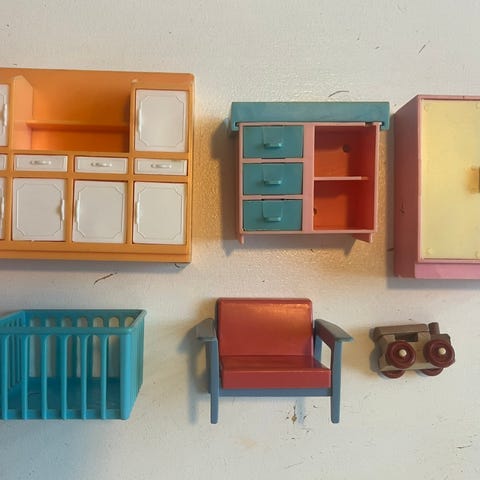 Vanha nukkekodin nukke, Kiinassa tehty. Pit. 9,5 cm. Varpaat ja sormet vaurioituneet osittain. Ei vaatteita. Postitus tai nouto.