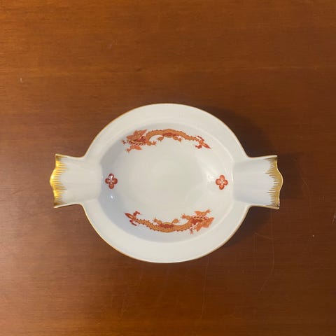Posliininen pelikorttiaiheinen tuhkakuppi