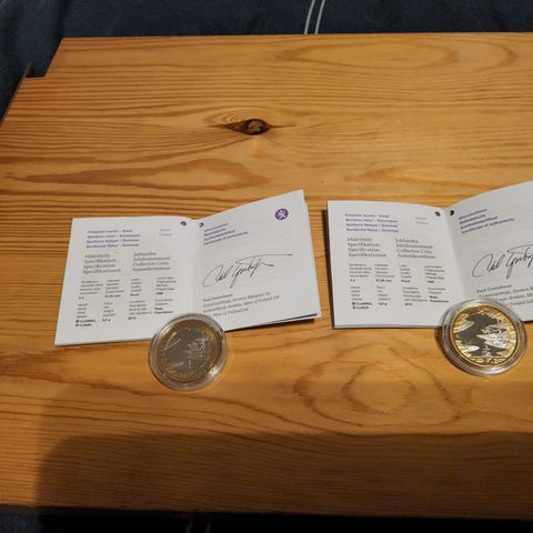 Pohjolan luonto Kasvisto -juhlarahassa leinikkiä reunustavat jäkälät ja sammaleet