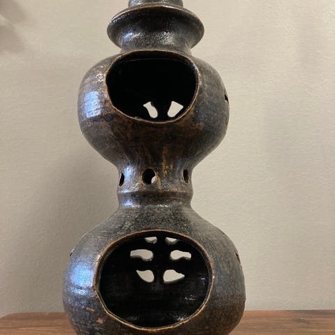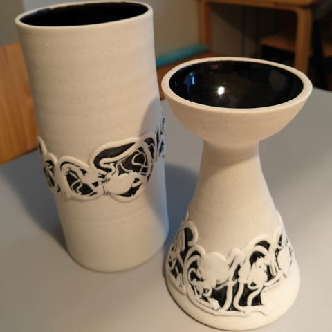 Upea seinäkynttelikkö, tekijä Perniöläinen keraamikko Taina Kurtze (s.1937).