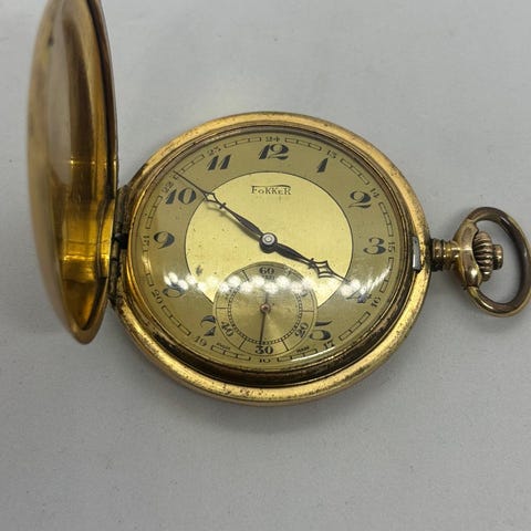 Viisarit ja reunaympyrät kullatut, takakannessa vanha lentokone kuva ja jotain kirjoitusta/leimoja