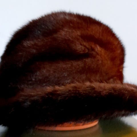 hyväkuntoinen vaaleanruskea vintage minkkihuivi. Kääntöpuoli satiinimaista tummanruskeaa viskoosikangasta. Huivin päissä pientä valkoista kuviointia. Huivissa aukko, josta päät voi pujottaa ristikkäin. Koko 110x8-12 cm.
