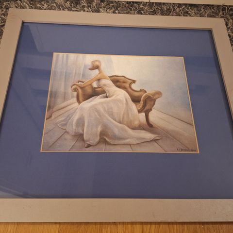 Kehystetty taulu, lev 69,5x kork 57,5. Taulun takana signeeraus,