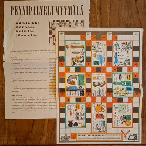 Vastauskortteja 84 kpl joista voi löytyä pientä tahraa tai jälkeä -20 tekstittömiä. Setelirahaa 16+16 kpl . Vastauslappuja ja peliohjeet on. Kynä löytyy-hyvin pureskeltu tosin.Tiimalasi löytyy-kuten arpakuutio on-puuttuu kirjoitusalustat joka pelaamista mielestäni ei estä. Laatikon kannessa kulumista ja Riitan vierestä etukannessa puuttuu hieman pintaa.