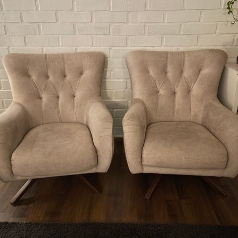 Upea italiastyylinen nojatuoli. Verhoiltu valkoisella keinonahalla. Marimekon tyyny ei kuulu hintaan