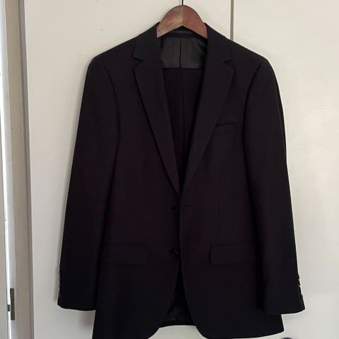 Muutamissa tilaisuuksissa käytetty siisti musta miesten puku.