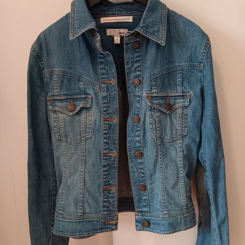 Lyhyt farkkutakki. Irrotrttava tekoturkis kaulus 40 Tyköistuva malli