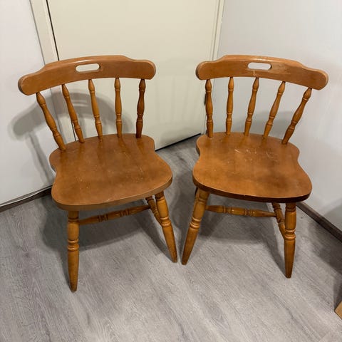 Laadukkaat ja hyväkuntoiset Varjosen Puunjalostus Oy tuolit myytävänä. Jokainen tuoli on tukeva ja valmis käyttöön. Verhoiluissa pieniä jälkiä. Valmistajan tarrat pohjassa. Istuinkorkeus 48 cm. Myydään settinä.