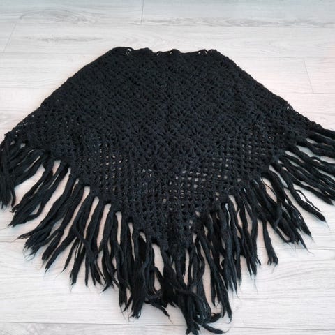 Virkattu poncho musta. Sopii 36 – 38 kokoisille.