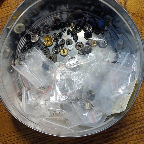 Kokoelma erilaisia nappeja, sisältää myös armeijan nappeja (4kpl).