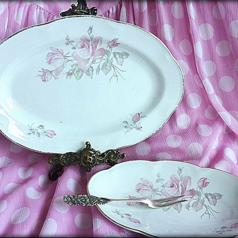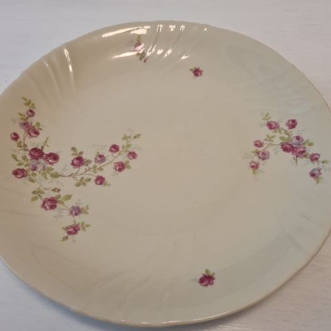 Myyn kunnoltaan uudenveroisen Arabian pikkuruusu tarjoilulautasen. 40-luvulta. Halkaisija 33cm, korkeus 3.2cm.