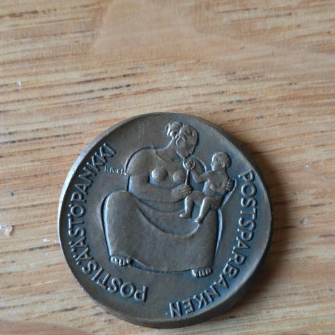 2 Postisäästöpankki mitalia, 75-v juhlaraha PSP