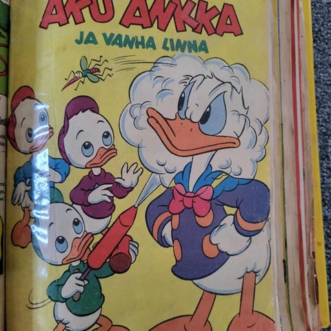 Myydään 2 kpl Aku Ankkoja vuodelta 1954. Lehdet ovat kohtalaisessa kunnossa: lehtiin tehdyt merkinnät näkyvät kuvissa.