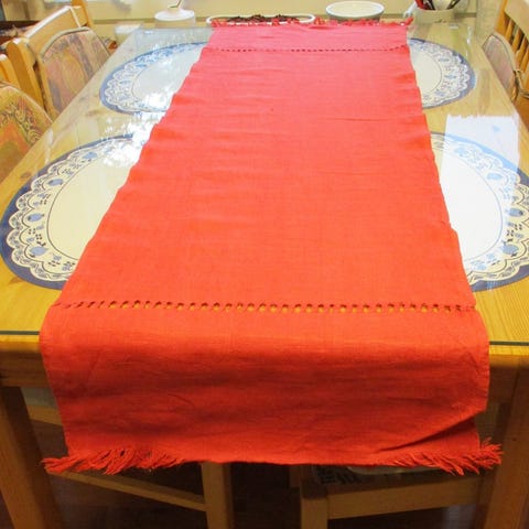 Sinisävyinen Kaitaliina, ilmeisesti pellavaa( ei varma), leveys 32.5 cm, pituus 106 cm, ehjä.
