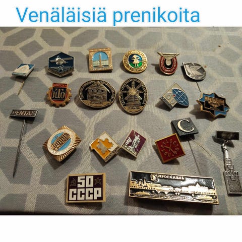 Vanhat rintaneulat, vappukukat ym. 5 kpl yhteensä. 1 kpl lentokone, sininen kukka, päivänkakkara, kielo ja sinivuokko. Ehjiä. Postitus tai nouto.