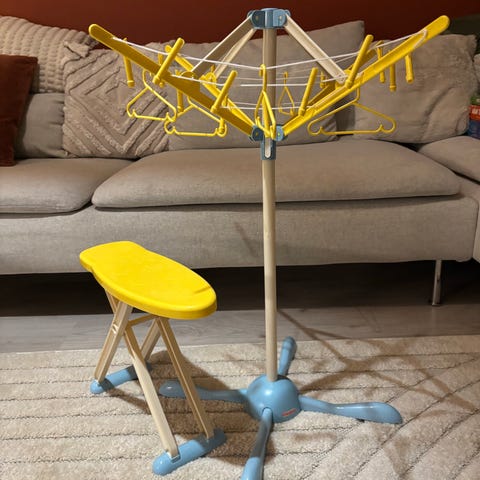 Myydään lasten retro pyykkiteline ja silityslauta lelut settinä hintaan 4e.