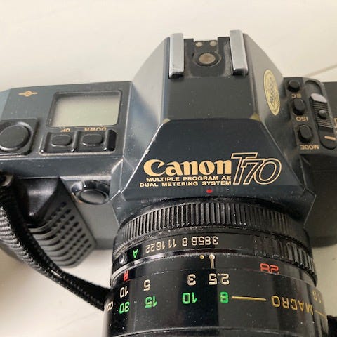 Canon T70 on muotoinen kamera, joka kuuluu Canonin kameratuotteisiin. Se on suunniteltu valokuvaamiseen ja sisältää objektiivin, jonka polttoväli on 35-70 mm ja aukko 1:3,5-4,5. Kamera on valmistettu Canonin toimesta ja soveltuu erilaisiin valokuvaustarkoituksiin.