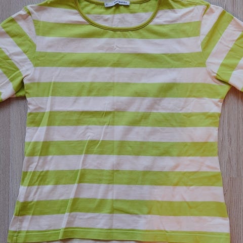 Myytävänä erittäin siisti Marimekon punaraidallinen T-paita. Koko L, rinnanympärys 100cm, pituus kainalosta helmaan 35cm, hiha olkapäältä hihansuuhun 40cm. Voin postittaa, kulut 5,90.