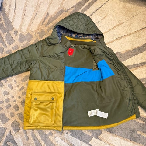 Myydään vähänkäytetty tummansininen talvitakki koossa 164. Pituus niskasta helmaan n. 68cm, leveys kainalosta kainaloon n. 50cm, hiha kainalosta n. 46cm. Hihansuissa mukavat ns. resorit, jotka pitävät hihat paremmin paikoillaan ja ranteet lämpiminä. Ei käytönjälkiä.