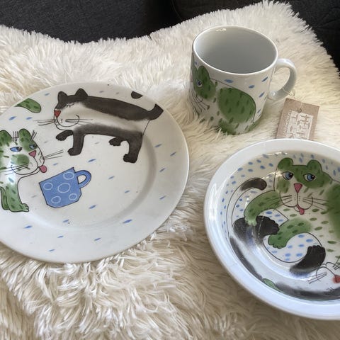 Kaunis koira aiheinen lasten ruoka-astiasto posliinia.