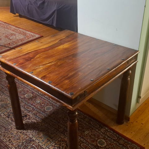 Täysi puinen kaunis pöytä. Iäkäs, mutta hyvässä kunnossa. L 80cm, S 53cm, K 76cm. Nouto Nummelasta
