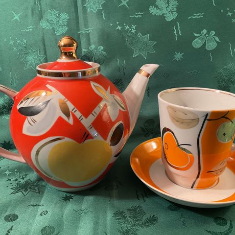 Gzel posliinitehtaan teekannu, käsintehty ja maalattu. 1970-80-luvulta.
